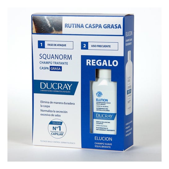 Pack de soins capillaires comprenant le shampooing antipelliculaire Squanorm et le shampooing Elution pour un usage fréquent. Aide à réguler la production excessive de sébum sur le cuir chevelu et prévient la desquamation de la peau. Ensemble, ils aident à prévenir la réapparition des pellicules. Convient aux peaux et aux cheveux gras.