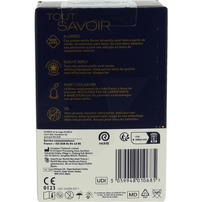 Fabriqués en nitrile, ils sont idéaux pour les personnes présentant des allergies ou une sensibilité au latex. Ces préservatifs sont les plus fins jamais créés par Durex, et disposent d'un extra de lubrification, grâce à un lubrifiant à base de silicone, qui améliore encore l'expérience.
