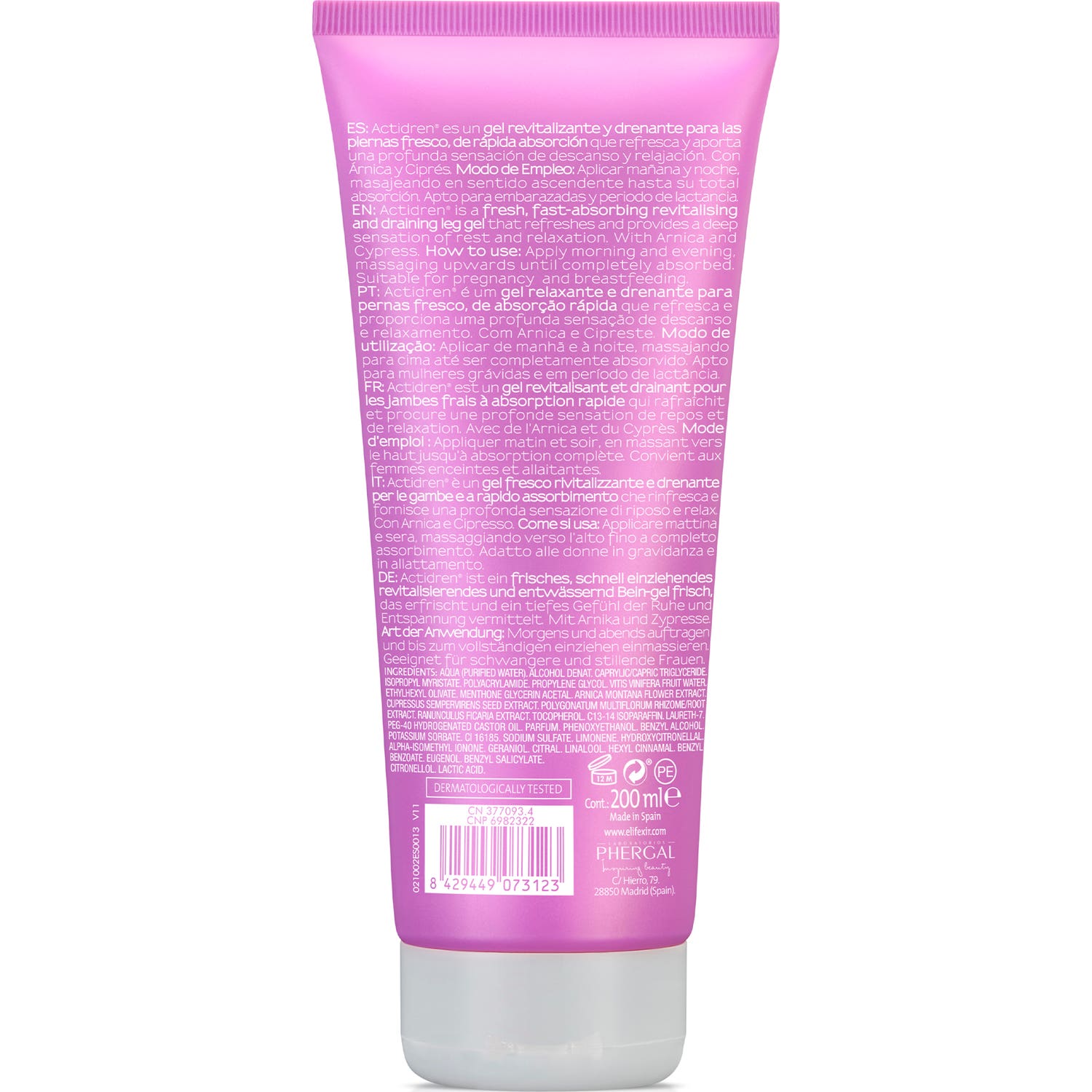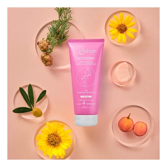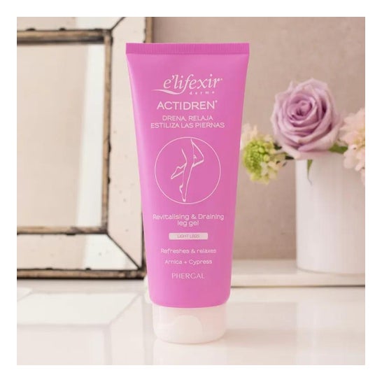 Le gel pour les jambes fatiguées E'lifexir® Actidren gel permet de diminuer le volume et de relaxer les jambes. Le secret de sa formule réside dans le varitonic, une combinaison exclusive d'extraits végétaux drainants qui éliminent les liquides accumulés dans les genoux et les chevilles, et d'extraits activateurs de la microcirculation capables de l'activer jusqu'à 26 % de plus.