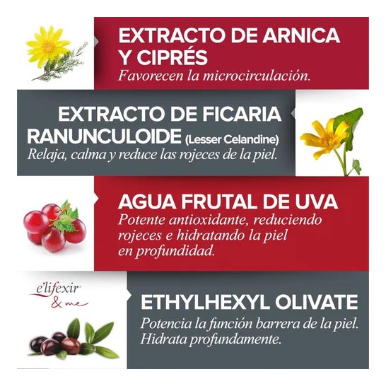 AQUA. DENAT ALCOOL. POLYACRYLAMIDE. C13-14 ISOPARAFFINE. LAURETH-7. TRIGLYCÉRIDE CAPRYLIQUE/CAPRIQUE. LE MYRISTATE D'ISOPROPYLE. PROPYLÈNE GLYCOL. EXTRAIT D'ARNICA MONTANA. EXTRAIT DE CUPRESSUS SEMPERVIVENS. EXTRAIT DE POLYGONATUM MULTIFLORUM. DIMETHICONE COPOLYOL. EXTRAIT DE RANUNCULUS FICARIA. VITIS VINIFERA. PHÉNOXYÉTHANOL. METHYLPARABEN. BUTYLPARABEN. ETHYLPARABEN. PROPYLPARABEN. ACÉTAL DE MENTHONE GLYCÉRINE PARFUM.