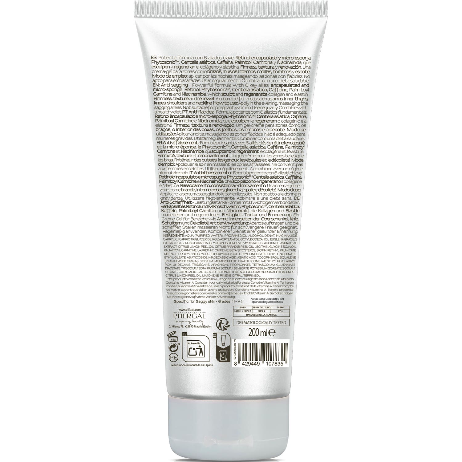 E'lifexir Anti-flaccidité Rétinol 200ml est une crème corporelle raffermissante qui aide à obtenir une peau ferme et sculptée.
