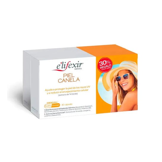 Complément alimentaire qui aide à préparer la peau et les yeux à l'exposition au soleil. Favorise un bronzage plus intense et durable, et renforce les défenses de la peau. Fournit des propriétés antioxydantes et protège la peau des rayons UV. Contient de la vitamine E et du sélénium pour aider à protéger les cellules contre les dommages oxydatifs, ainsi que de la vitamine C, du zinc et de la biotine pour contribuer au bon état de la peau. Format de 2 unités de 40 capsules.