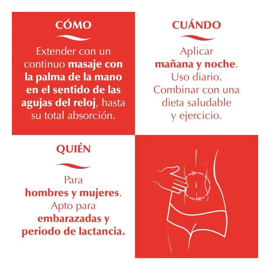 Appliquer Elifexir Vientre Plano matin et soir, en l'étalant par un massage continu avec la paume de la main dans le sens des aiguilles d'une montre et avec des mouvements circulaires, jusqu'à absorption complète. Usage topique et unisexe, adapté à une application tout au long de l'année. Il est recommandé de compléter l'utilisation de Vientre Plano par un mode de vie sain, incluant un exercice régulier et une alimentation équilibrée, pour maximiser les résultats.