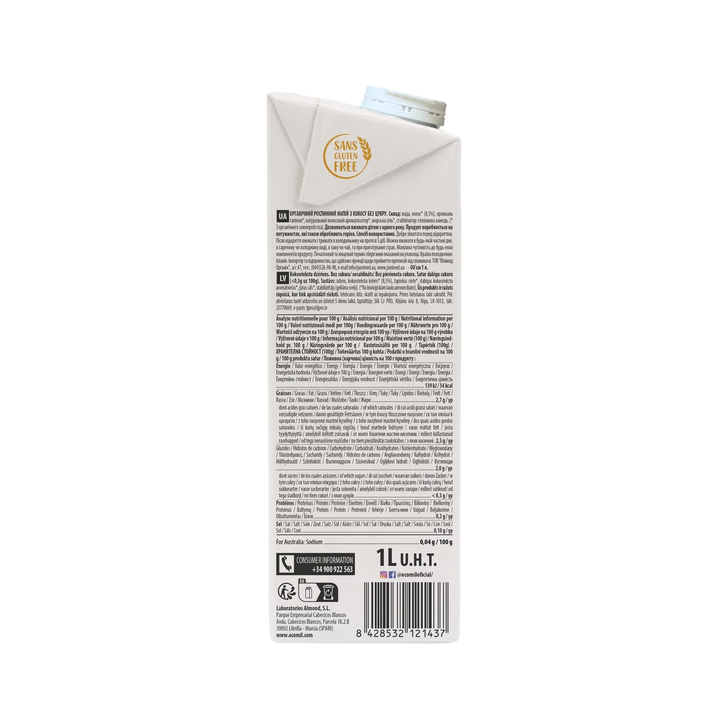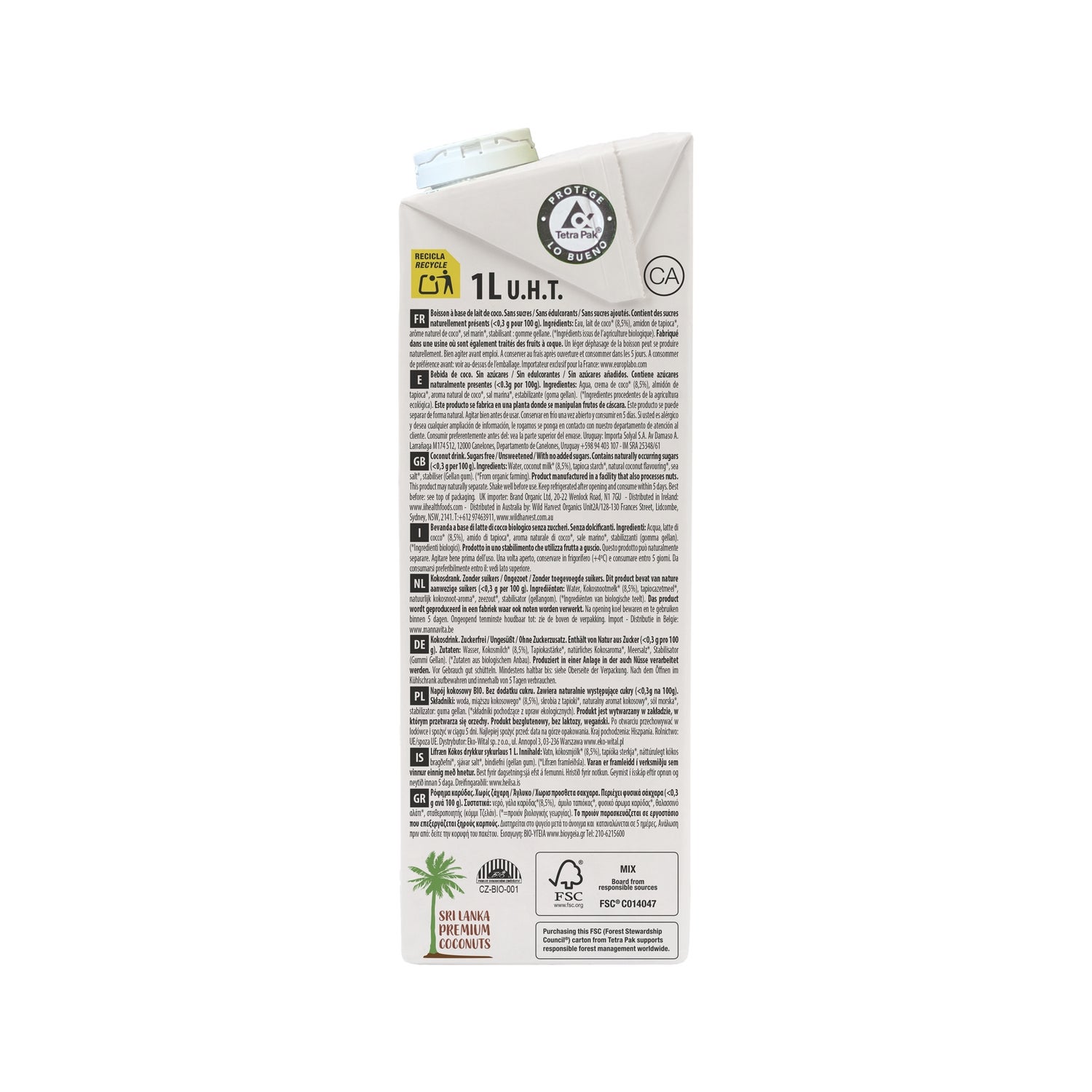 Lait de coco fabriqué à partir de noix de coco provenant de cultures biologiques certifiées, idéal pour préparer des boissons végétales, des desserts et des smoothies, en remplacement du traditionnel lait de vache.