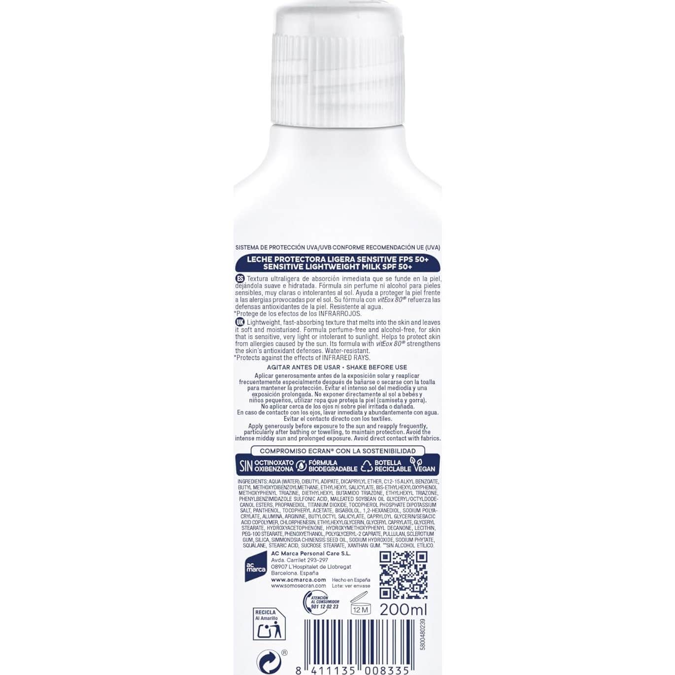 L'application de ce lait protecteur est simple et rapide, grâce à son format pratique. Il contient VitEox80®, qui offre une protection efficace contre les rayons UVA et UVB, ainsi que contre les effets des infrarouges. De plus, il renforce les défenses antioxydantes de la peau, contribuant à la maintenir en conditions optimales.