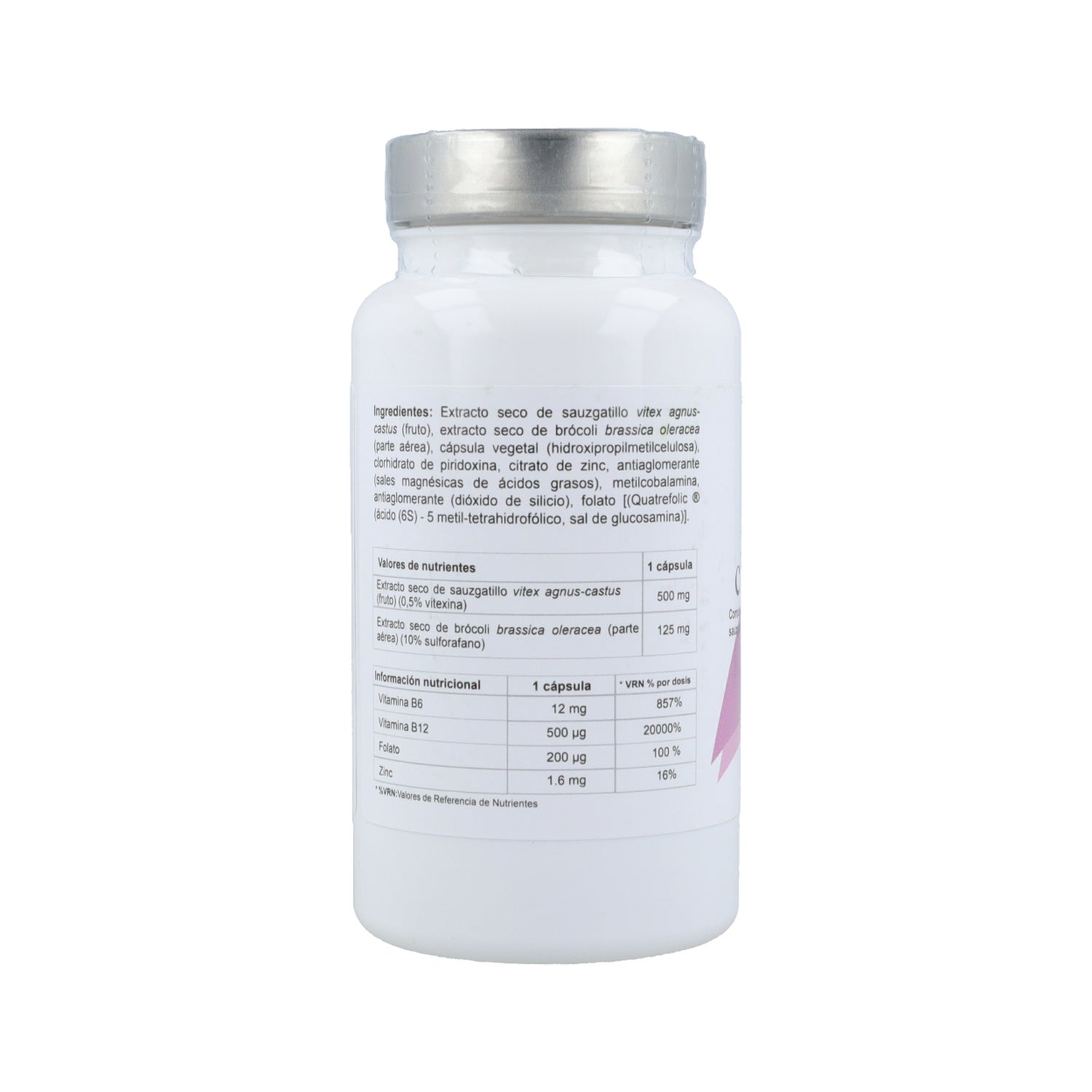 Complément alimentaire contenant des extraits de vitex agnus-castus, de dong quai, d'actée à grappes noires et de pépins de raisin. La combinaison d'extraits de plantes, de vitamines et de minéraux présents dans la formule favorise l'équilibre du système hormonal féminin et améliore les symptômes liés au cycle menstruel. Convient aux adultes.