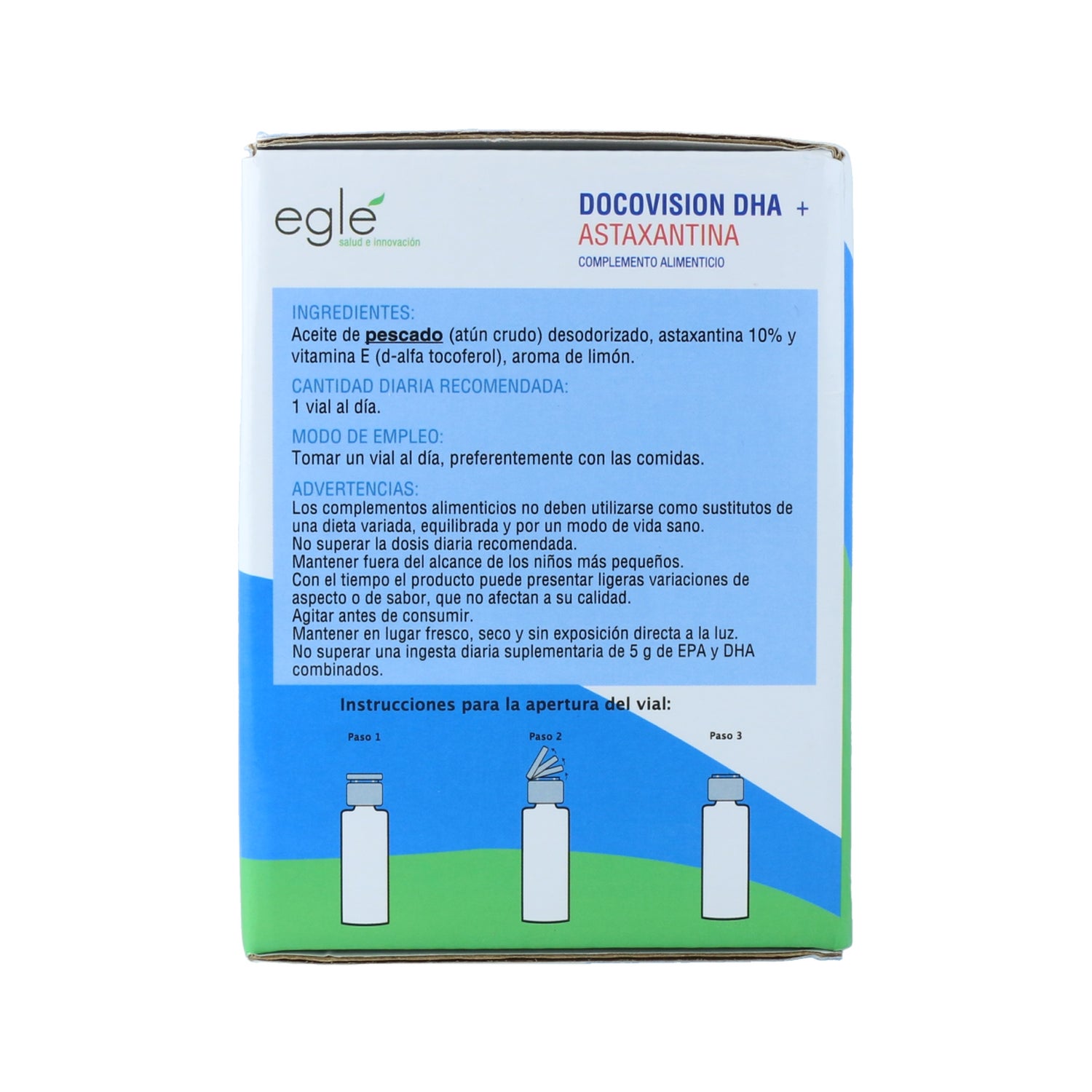 Composition : Par 1 capsule : Huile de poisson désodorisée (thon) 1333 mg, DHA en tant que TG (acide docosahexaénoïque) 1000 mg, EPA en tant que TG (acide iecosapentaénoïque) 66,6 mg, Astaxanthine.2 mg, Vitamine E.6,7 mg alpha TE.