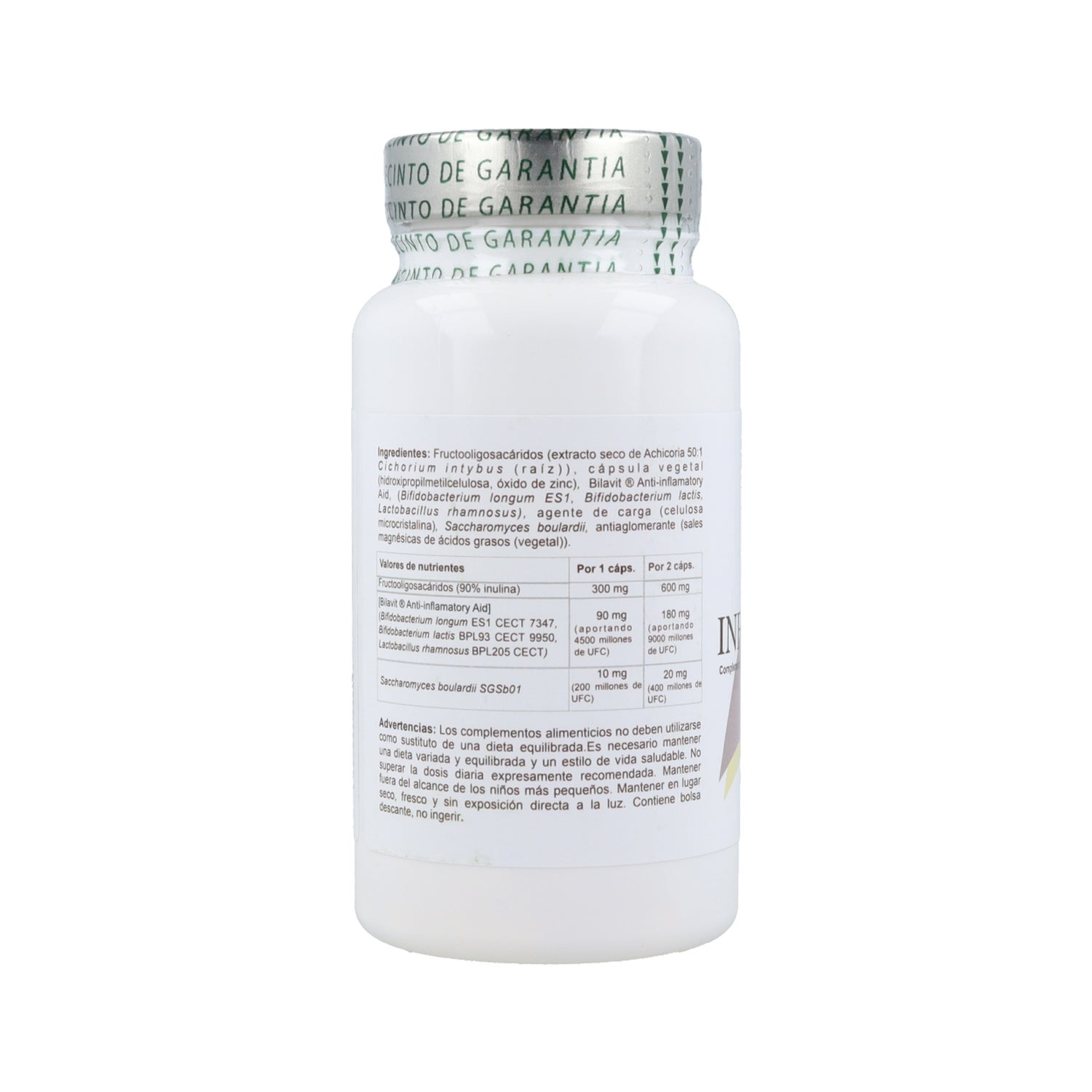 Complément alimentaire sous forme de capsule, composé d'inuline et de 4 souches de bifidobacterium, lactobacillus et saccharomyces, qui sont indiquées pour soutenir et promouvoir la santé gastro-intestinale, et aider à maintenir la flore intestinale. Il contribue également à renforcer les défenses naturelles du système immunitaire et, grâce à l'inuline, exerce un puissant effet anti-inflammatoire intestinal.