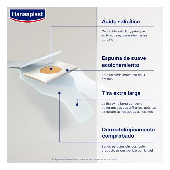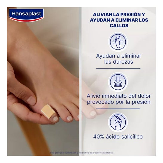 Hansaplast Pansements pour Cors 8uds sont des patchs protecteurs qui aident à soulager la douleur causée par le frottement et la pression que les chaussures exercent sur les cors des pieds.