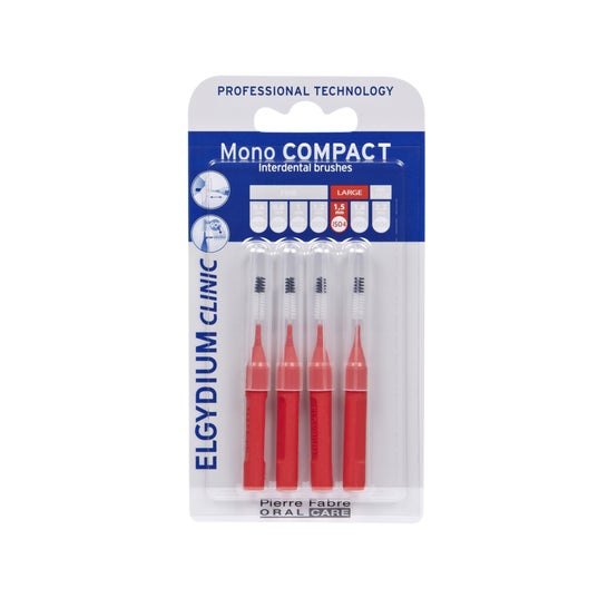 Elgydium Clinic Mono Compact Interdental Brush 1.5mm Red 4 pièces brosses d'un diamètre de 1.5mm éliminent efficacement la plaque dentaire et les débris alimentaires dans les espaces interdentaires.