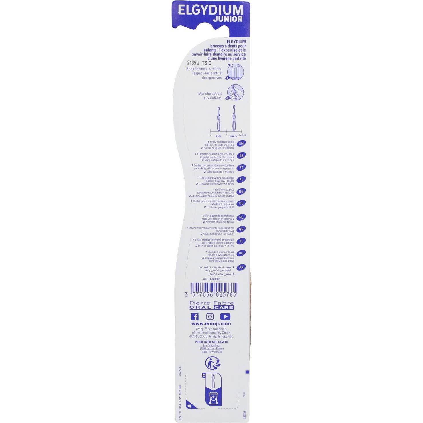 Cette brosse à dents est idéale pour encourager de bonnes habitudes d'hygiène buccale dès le plus jeune âge, contribuant à la santé dentaire des enfants. De plus, son design inclut un emballage contenant au moins 9 % de matériaux recyclés et est majoritairement recyclable, reflétant un engagement envers l'environnement.