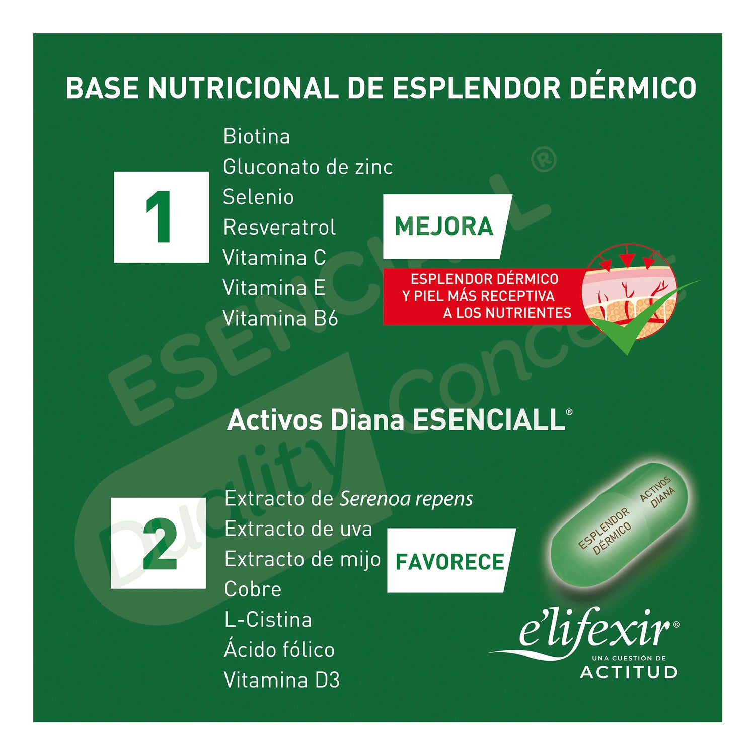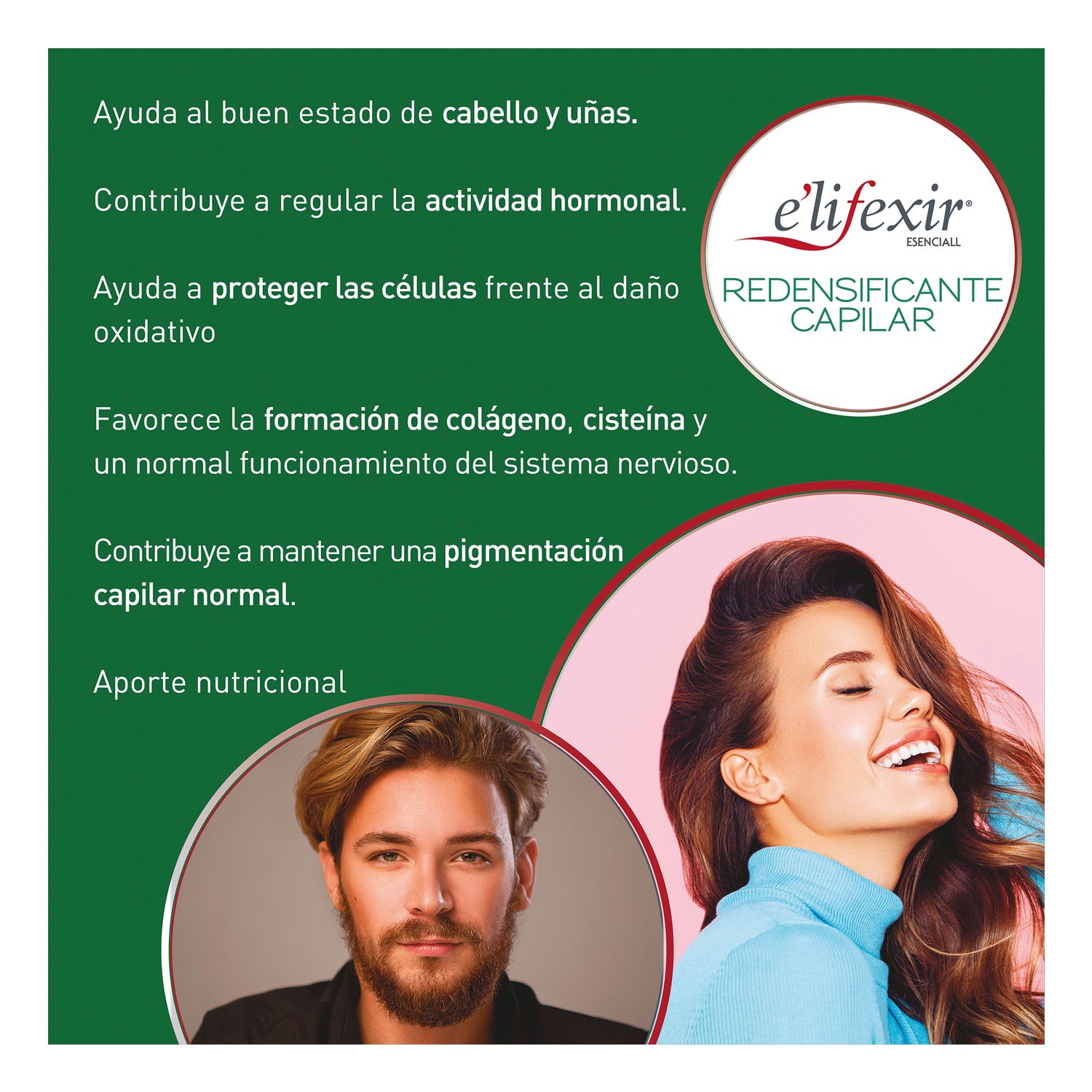 Ensemble conçu pour aider à renforcer le bulbe pileux et à améliorer la structure des cheveux. Complément alimentaire en format de 60 capsules, composé d'une base de biotine, de gluconate de zinc, de sélénium, de resvératrol, de vitamine C, de vitamine E et de vitamine B6. Enrichi en extrait de raisin, acide folique et vitamine D3. Apporte vitalité, volume, brillance et force, en favorisant la synthèse correcte des protéines kératiniques