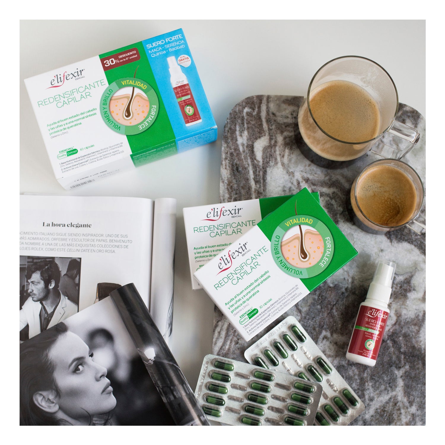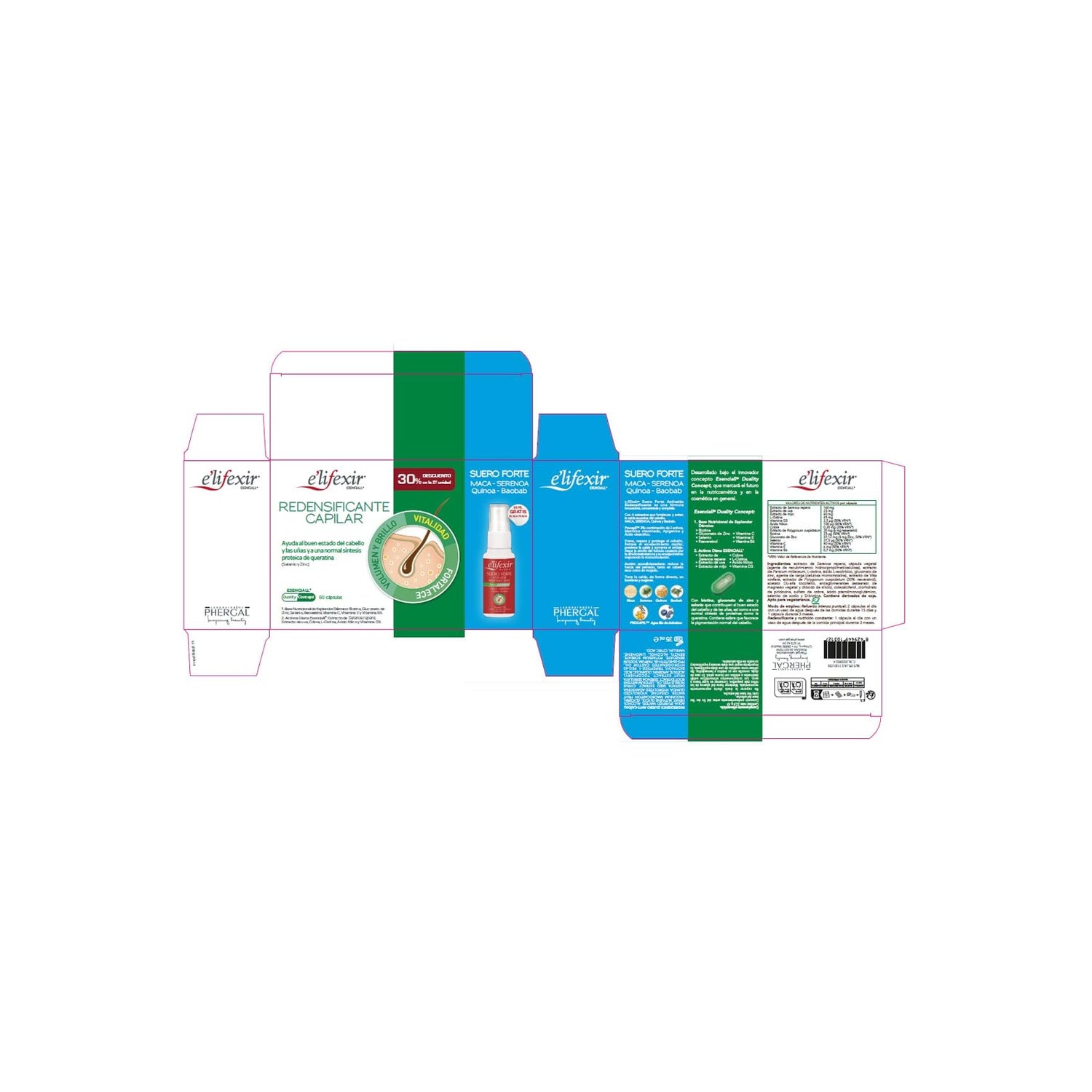 Elifexir Redensifieur de cheveux 2X30Caps + Sérum anti-chute 35ml