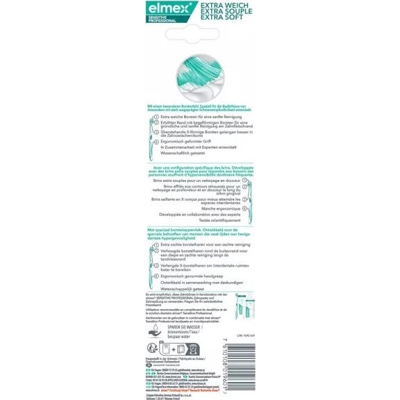 Elmex Sensitive Professional Brosse à Dents Extra Douce 2uds est une brosse conçue spécifiquement pour l'hygiène buccale des personnes ayant des dents sensibles. Sa caractéristique principale est les filaments extra doux, qui permettent un nettoyage délicat et efficace.