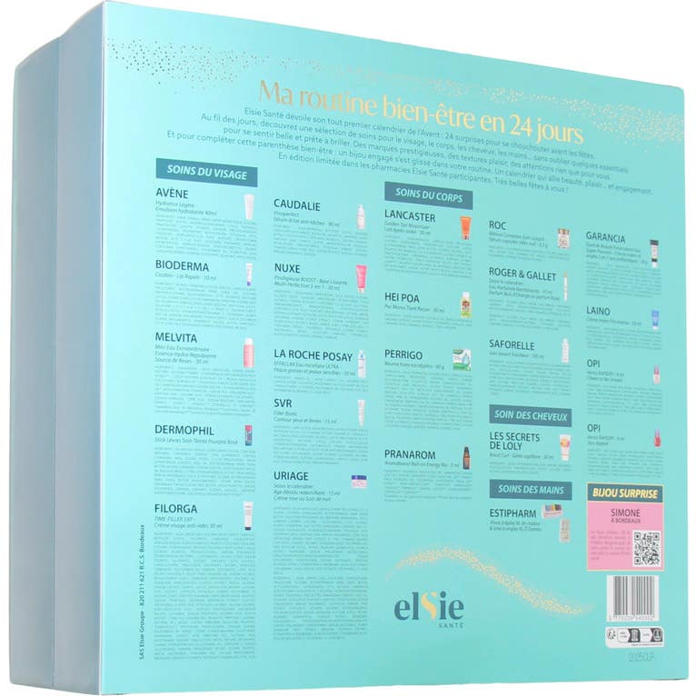 Elsie Sante Calendrier de l'Avent 2025 offre une expérience de bien-être et de soin personnel pendant le mois de décembre. Ce calendrier, le premier de son genre présenté par Elsie Santé, comprend un total de 24 produits conçus pour fournir une routine de beauté complète avant les festivités.