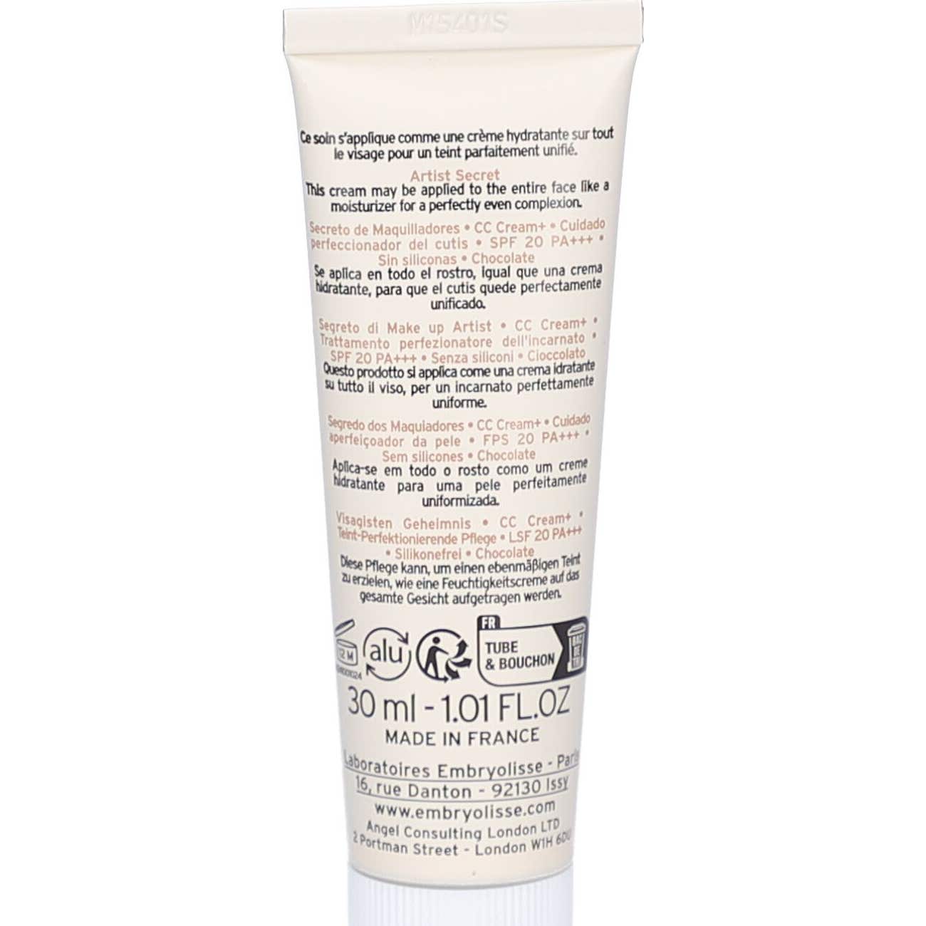 Embryolisse CC Cream+ Spf20 Chocolat 30 ml est un produit innovant dans le domaine du maquillage et des soins de la peau. Il se présente comme un perfecteur de teint qui combine la fonction de maquillage avec des bienfaits pour la peau, s'adaptant à tous les types de peau et tonalités.