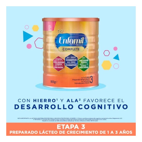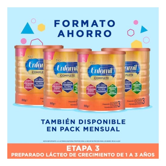 Enfamil Premium Complete 3 3x800g est une préparation lactée qui répond aux besoins nutritionnels d'une alimentation équilibrée et variée.