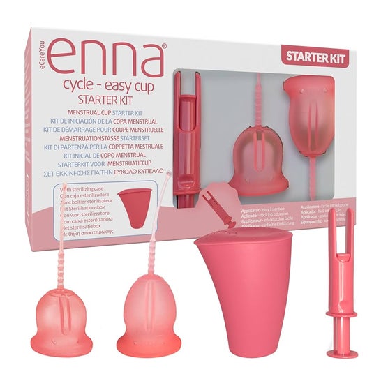 Enna menstrual cup starter pack, contient : coupe menstruelle courte taille S 1u coupe menstruelle standard 1u Enna Box applicateur stérilisant 1u gel lubrifiant 50ml. Le set comprend deux coupes pour initier l'utilisatrice à la pratique et à l'utilisation des coupes menstruelles. La coupe menstruelle peut être utilisée jusqu'à 12 heures d'affilée. Produit très confortable et facile à utiliser, ainsi que l'option la plus respectueuse de l'environnement. Fabriqué en silicone de qualité médicale.