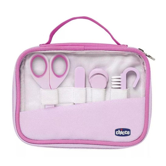Set de manucure rose idéal pour les bébés dès l'âge de 0 mois. Sa fonction est de maintenir en bon état les mains et les ongles des enfants, car il dispose de ciseaux à lames courbes et à bouts arrondis pour plus de sécurité, comprend 6 limes à ongles, 1 coupe-ongles à manche antidérapant et une brosse à ongles à poils hypoallergéniques pour éviter les réactions cutanées.