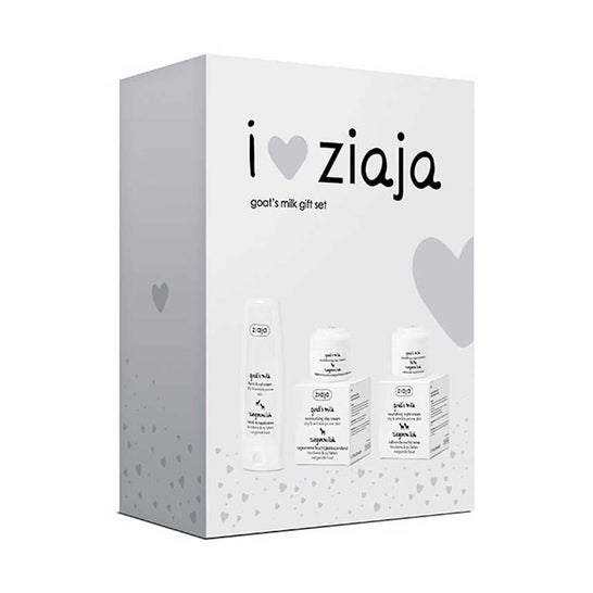 Boîte de produits de soins de la peau à base de lait de chèvre. Contient une crème de jour pour le visage de 50 ml, un traitement de nuit pour le visage de 50 ml et une crème de soin pour les mains délicates de 80 ml. Le lait de chèvre aide à la régénération, a un pH similaire à celui de la peau, ainsi que des minéraux et des vitamines. Aide à tonifier et à adoucir la peau. Convient à tous les types de peau.