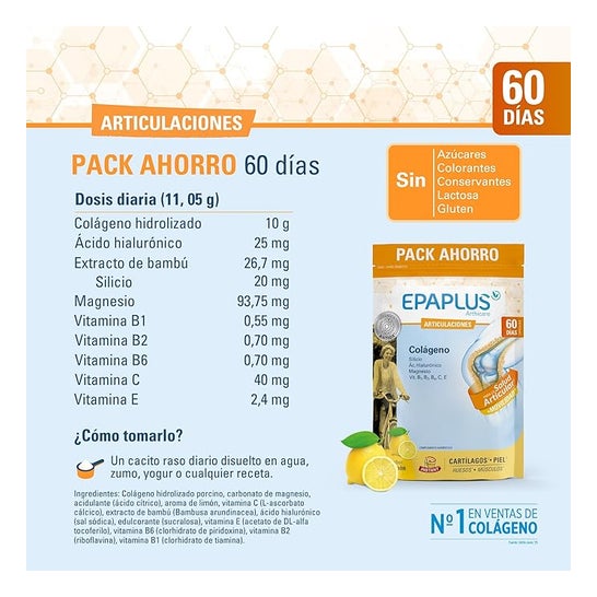 Epaplus Arthicare Collagen Silicon Lemon Flavour 668g est un complément alimentaire qui contribue au maintien et au fonctionnement optimal des os et des articulations et aide à prévenir l'usure du cartilage