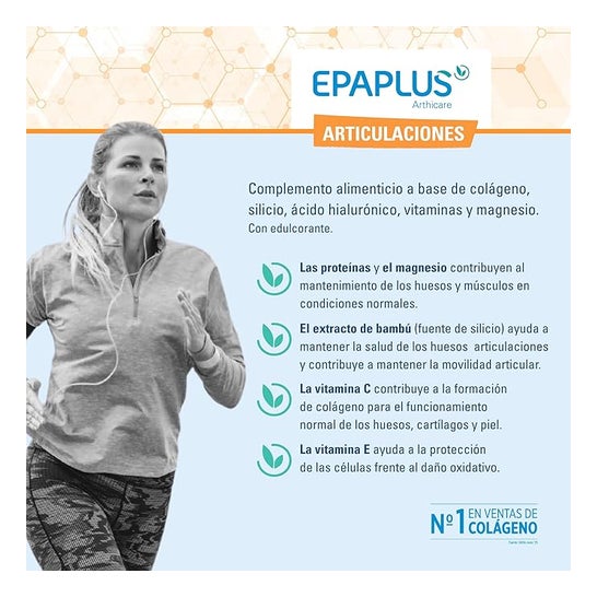 Formulé avec une combinaison de collagène, d' acide hyaluronique, de magnésium et de vitamines B1, B2, B6 et C qui favorisent le maintien des os et des articulations. Il contribue également à améliorer l'apparence de la peau, des ongles et des cheveux
