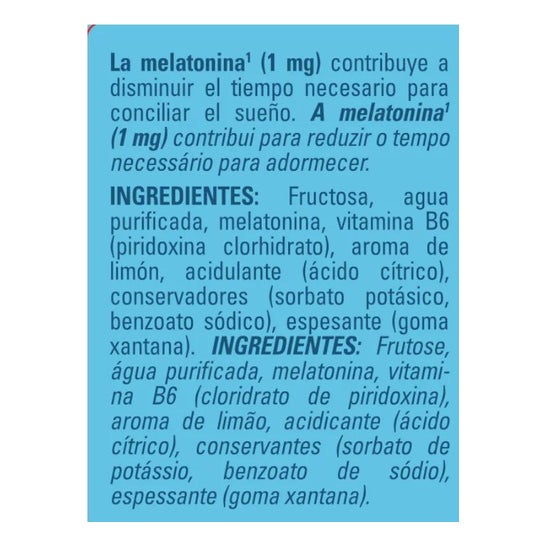 Le contenu de 4 gouttes équivaut à 1 mg de mélatonine, nécessaire pour aider à réduire le temps d'endormissement. D'autre part, la teneur en vitamine B6 aide à réduire la fatigue et la lassitude.