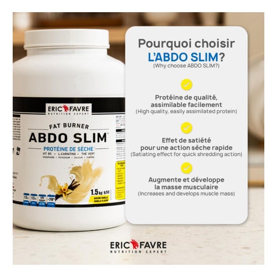 Eric Favre Abdo Slim Protéine Sèche Vanille 500g est conçue pour accompagner les programmes de sèche et de remise en forme tout en s’inscrivant dans une alimentation contrôlée.