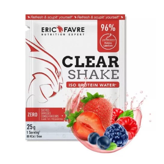 Eric Favre Clear Shake Iso Protein Water Fruits Rouges 25g est une boisson protéinée légère et rafraîchissante. La boisson Clear Shake Iso Protein Water est un isolat de protéines saveur fruits rouges qui contribue à la récupération musculaire après l’effort.