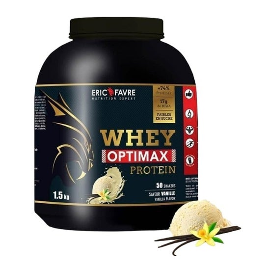 Eric Favre Whey Optimax Vanille 1500g est une protéine de qualité conçue pour favoriser la récupération musculaire et soutenir les performances sportives.