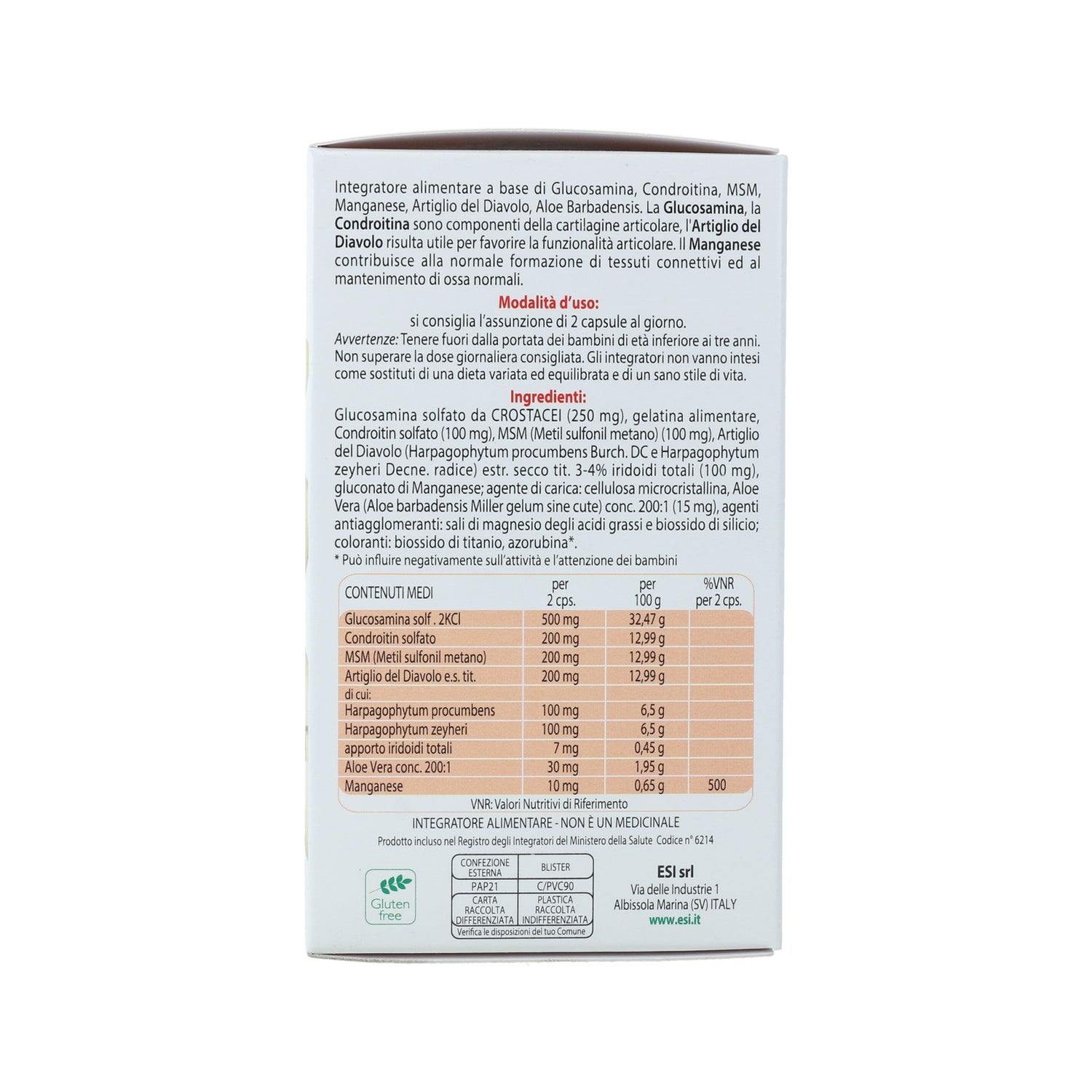 ESI NO DOL est un complément alimentaire qui aide à renforcer les articulations et à soulager les douleurs articulaires. Il est indiqué pour traiter les lésions du cartilagineuse ou les problèmes articulaires comme l'arthrose, l'arthrite ou les rhumatismes.