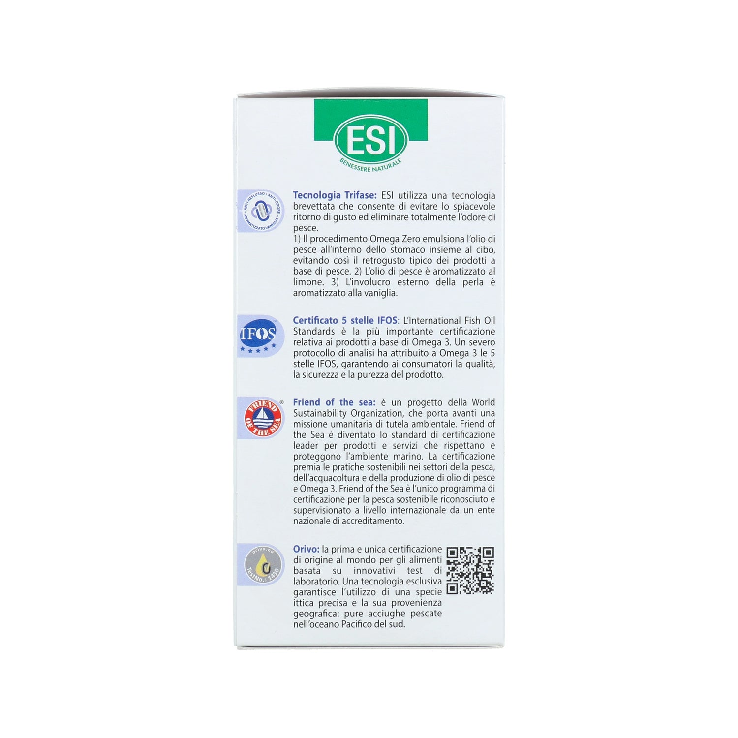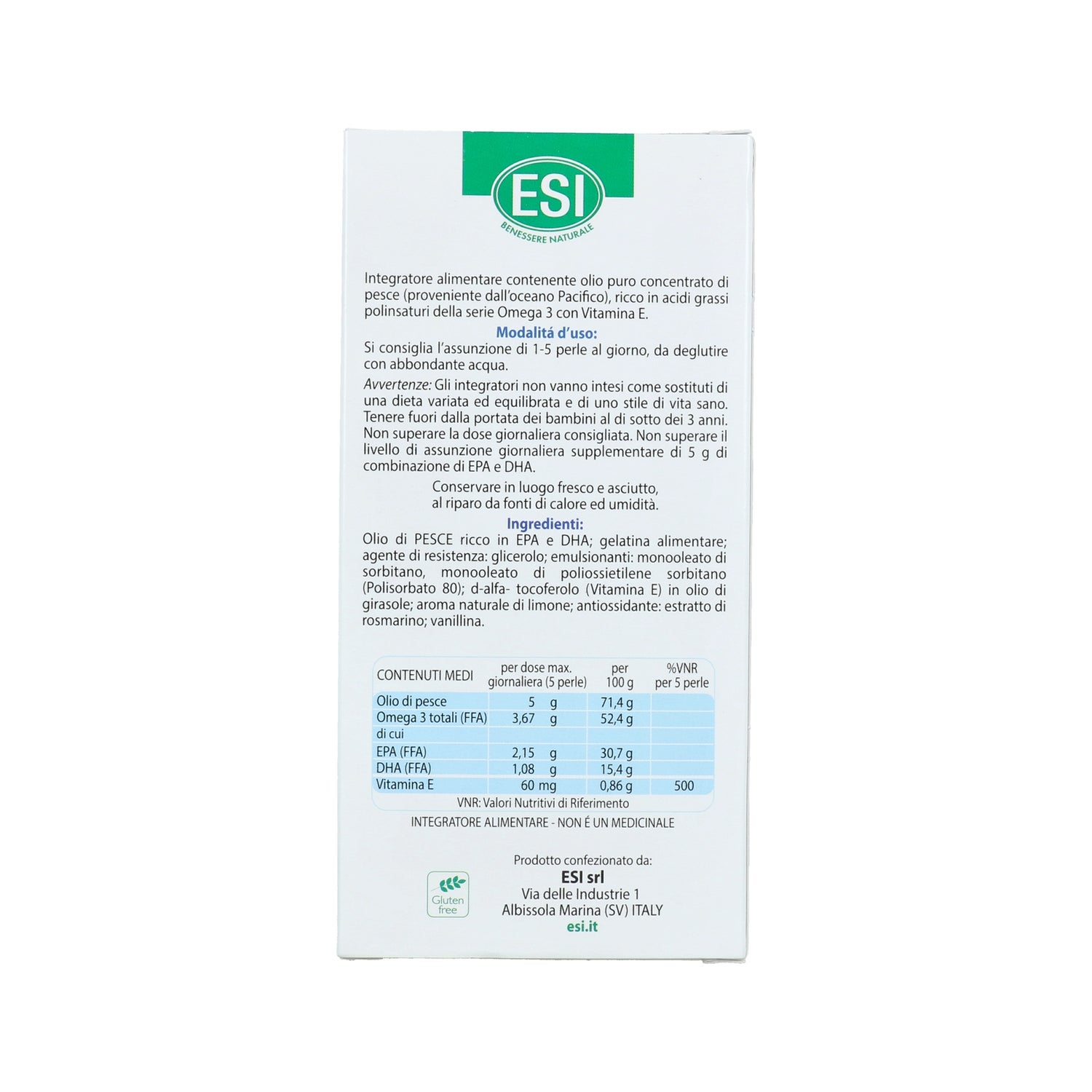 ESI Omega 3 Extra Pure 120 Pearls est un complément alimentaire à base d'huile de poisson concentrée, qui fournit un apport supplémentaire en oméga 3 et en vitamine E. Sa formule favorise la santé du cœur et du cerveau et aide à réguler le taux de triglycérides dans le sang. Il est également utile pour maintenir une vision normale, ainsi que pour prévenir le stress oxydatif. Il n'a pas d'odeur ni de goût de poisson, puisqu'il est aromatisé au citron.
