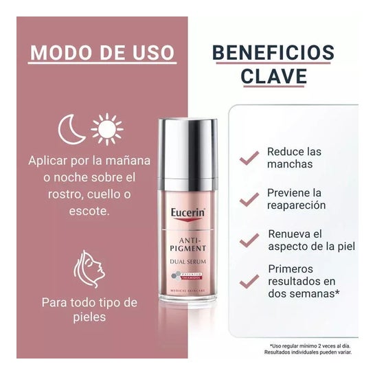 Eucerin Coffret Anti-Pigment Dual Sérum + Crème De Jour SPF30 50ml est un duo expert pour réduire les taches pigmentaires et retrouver un teint uniforme et lumineux, adapté à tous les types de peau.