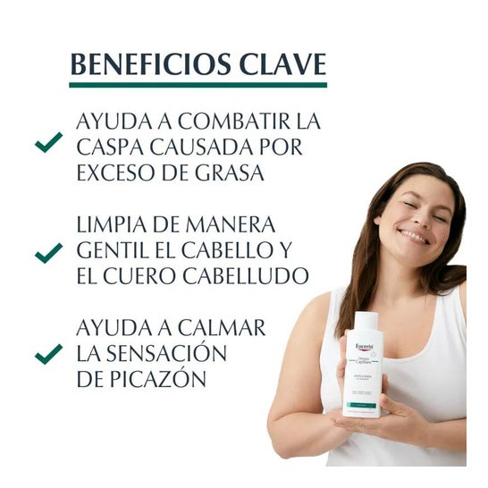 Le shampooing antipelliculaire Eucerin DermoCapillaire et spécialement formulé pour éliminer les pellicules grasses et apaiser les démangeaisons.
