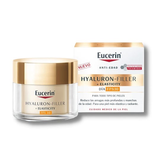 Eucerin Pack Hyaluron Filler Elasticity Jour SPF30 + Contour des Yeux est un ensemble de produits pour le soin de la peau, avec une action anti-âge.