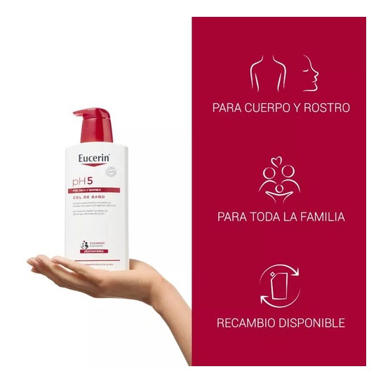 EUCERIN pH5 gel lavant est un gel nettoyant doux pour les peaux très sèches et sensibles, enclines aux démangeaisons et irritations.