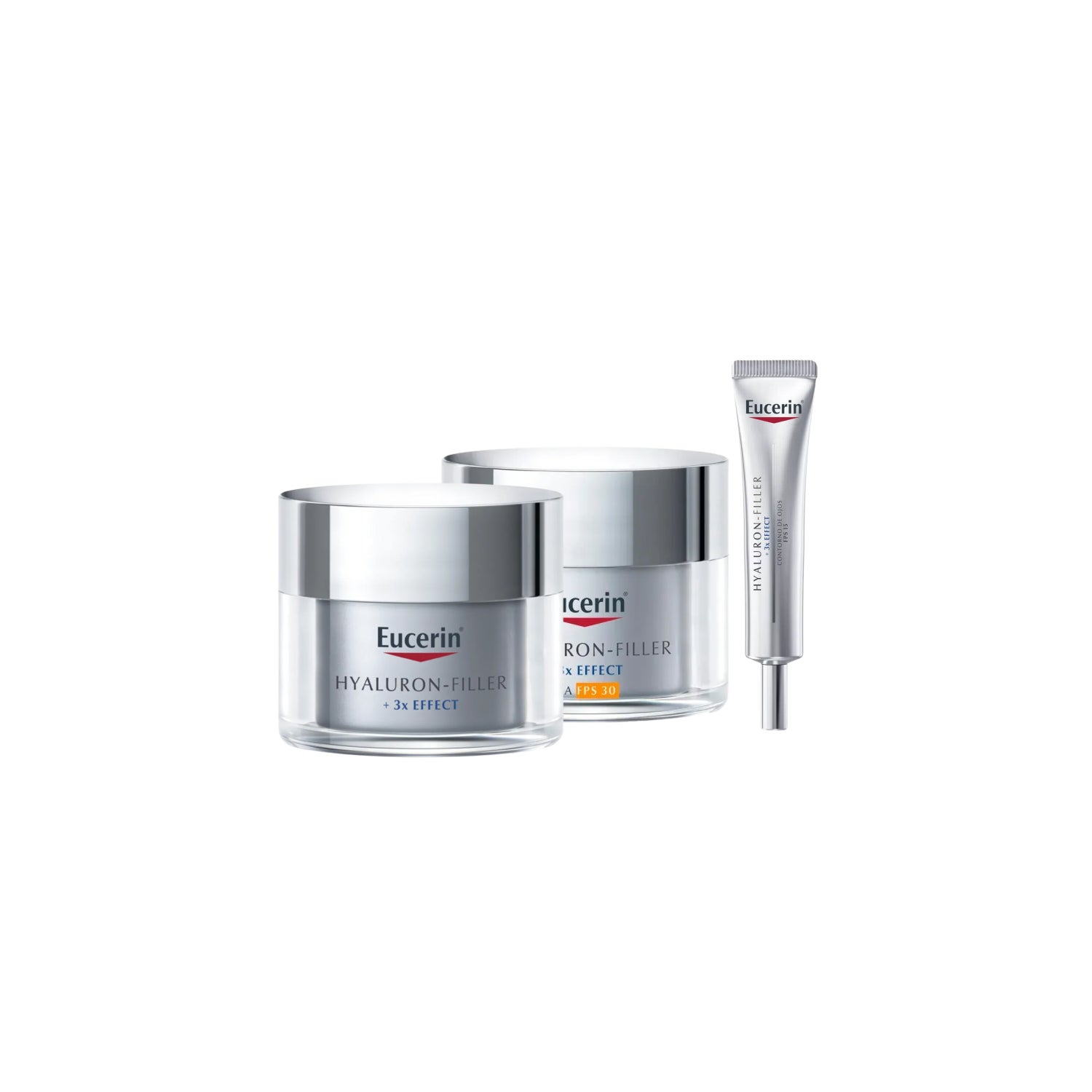 Eucerin Hyaluron-Filler Jour 3X Effect SPF30 50ml est une crème faciale anti-âge pour tous types de peau qui favorise une peau plus lumineuse, hydratée et lisse.