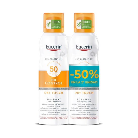 Eucerin Pack Oil Control Dry Touch Spray Transparent 2x200ml est un spray transparent avec une très haute protection solaire.