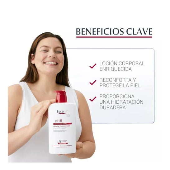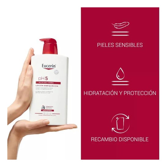 Eucerin® pH5 Lotion Enrichie 1000ml est spécialement formulée pour les peaux sensibles et très sèches. Elle hydrate durablement et augmente la résistance de la peau.