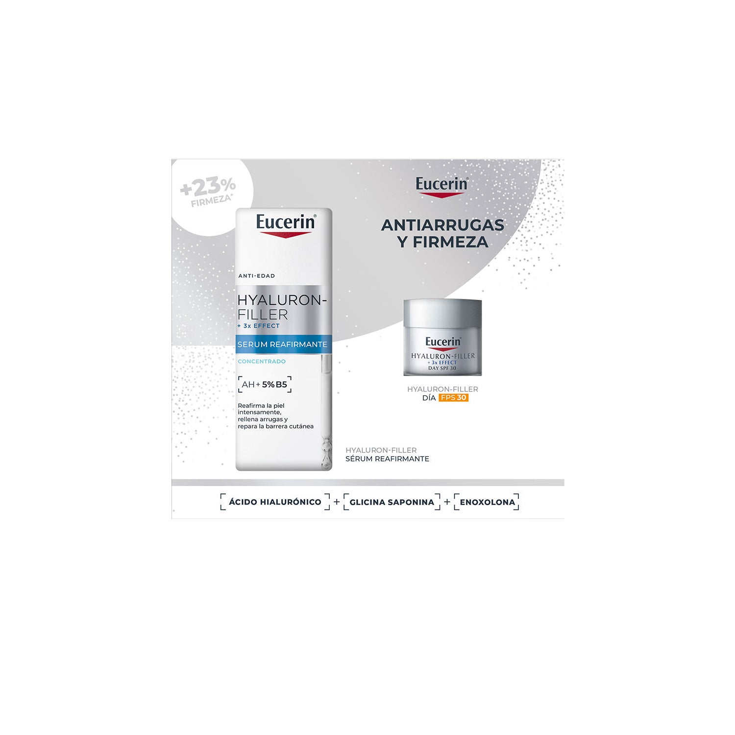 Eucerin Hyaluron-Filler Jour FPS 30 complète la routine quotidienne avec sa formule Triple Effet (x3), qui :