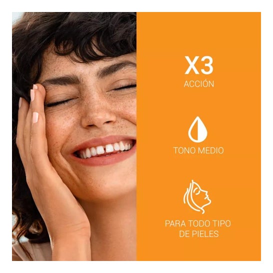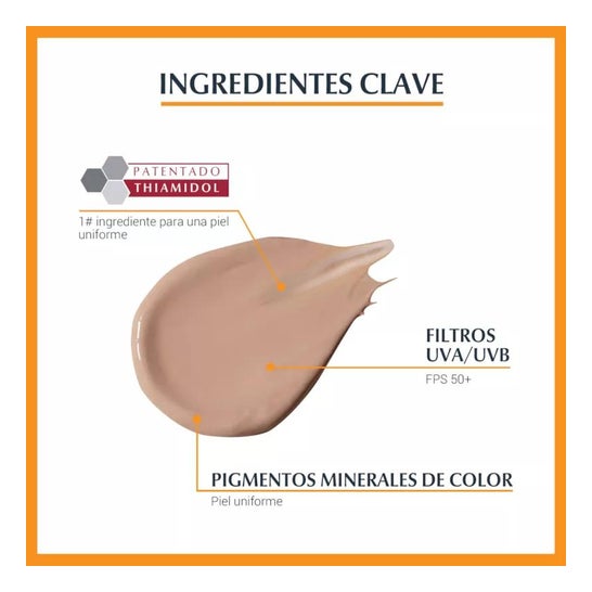 Cette crème solaire combine Advanced Spectral Technology avec des filtres UVA et UVB pour une très haute protection. En outre, sa formule comprend également du Thiamidol breveté qui aide à réduire les taches de pigmentation et à prévenir leur apparition. Elle contient aussi des pigments colorés qui offrent une protection supplémentaire contre la pigmentation induite par la lumière bleue (HEVis) et contribuent à l'obtention d'un teint plus uniforme.