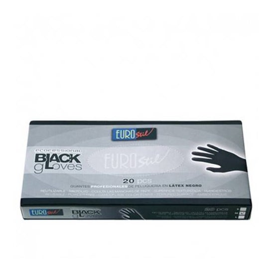 Eurostil Gants en Latex Noir TM 20uds sont la solution idéale pour protéger les mains lors de travaux de coloration capillaire et de traitements en coiffure. Leur design ajusté et leur texture antidérapante assurent une manipulation précise et sécurisée, étant parfaits pour ceux qui valorisent l'hygiène et le confort dans les environnements de beauté.
