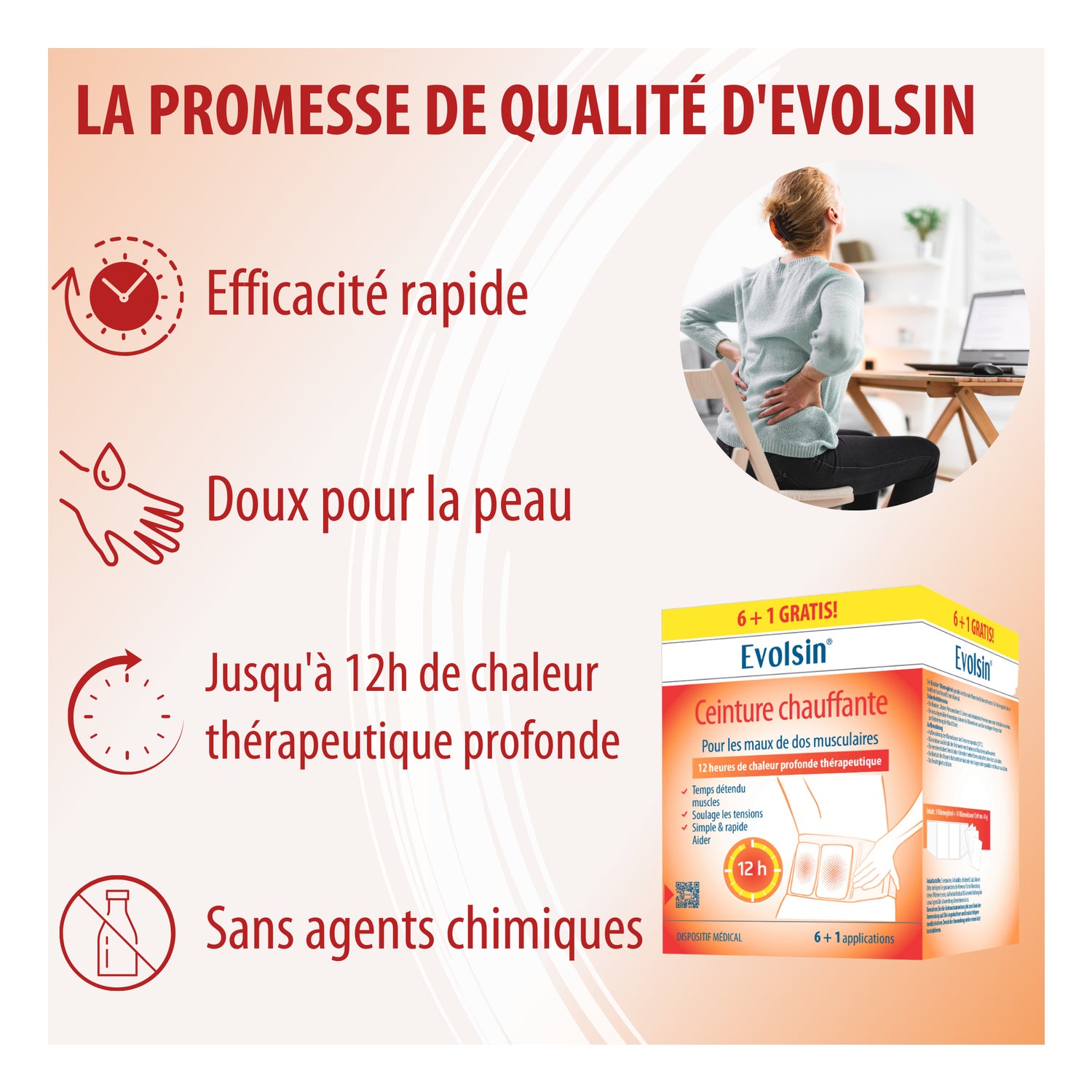 Evolsin Ceinture Chauffante 7 Applications est une ceinture lombaire chauffante conçue pour aider à détendre les muscles contractés et à soulager les tensions.