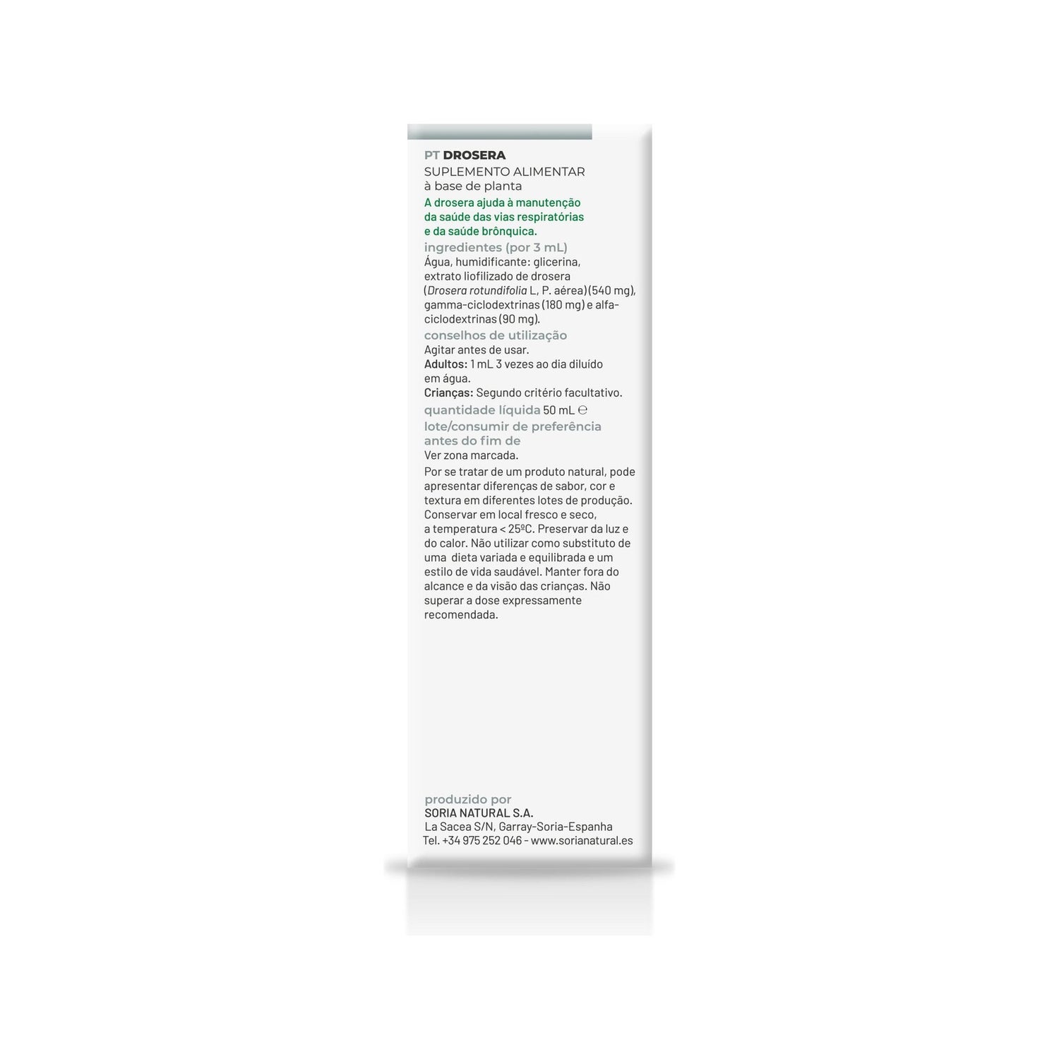 L'extrait de droséra de Soria Natural 50ml possède des propriétés expectorantes, antitussives et antispasmodiques idéales pour traiter et soulager la toux irritative de la grippe et des processus catarrhaux.