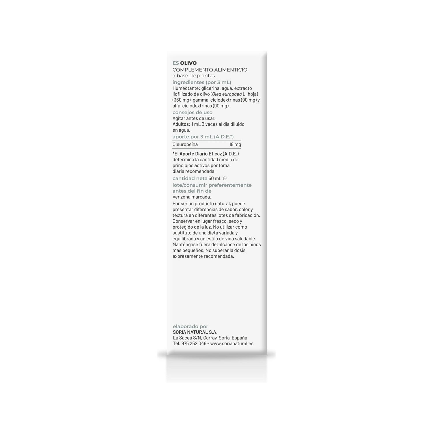 Soria Natural Olivo Extract 50ml est un complément alimentaire à l'extrait d'olive qui a des propriétés qui abaissent la pression sanguine (hypotensive), antispasmodique, diurétique, antibactérienne et antifongique