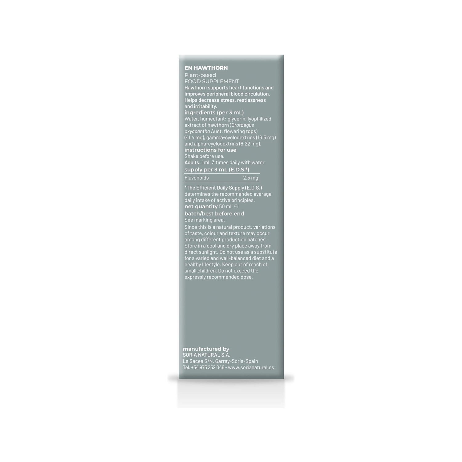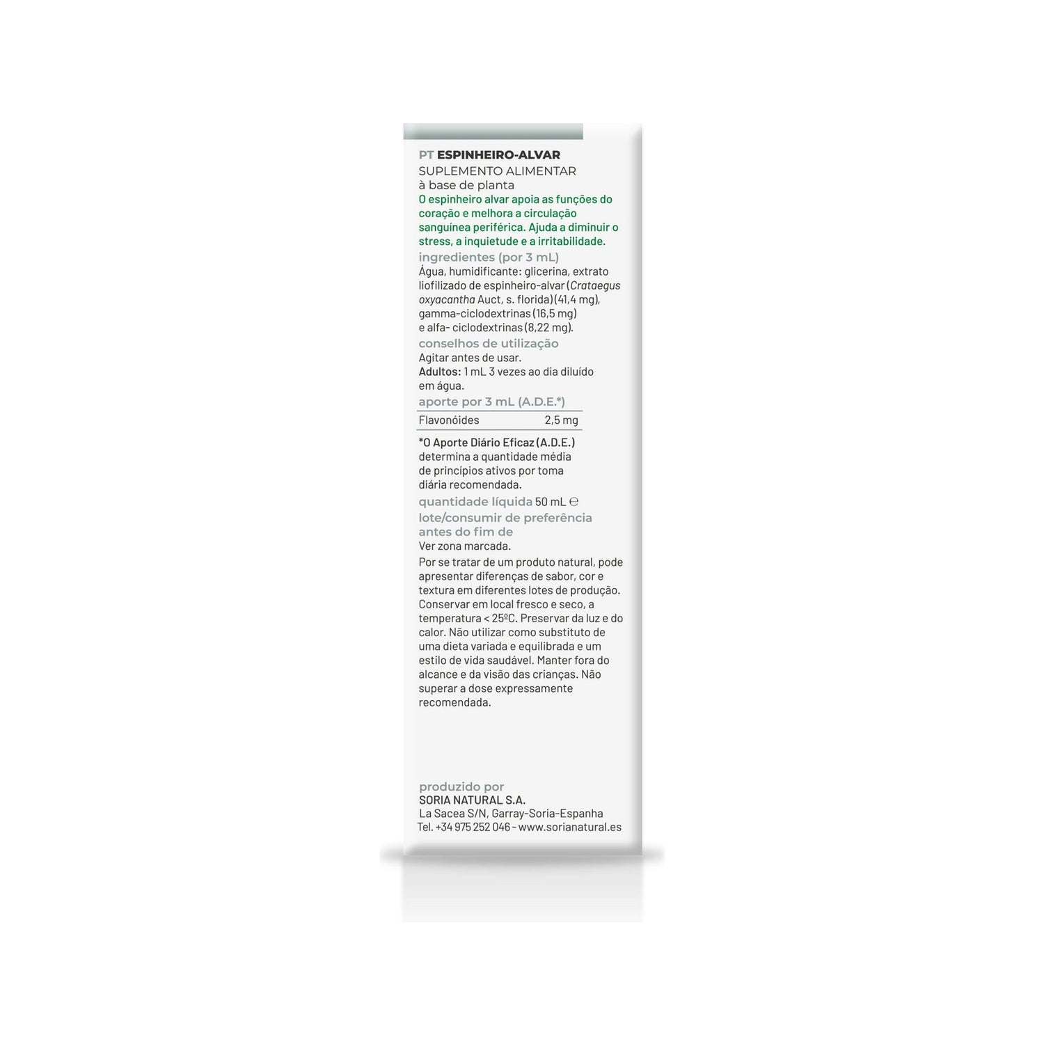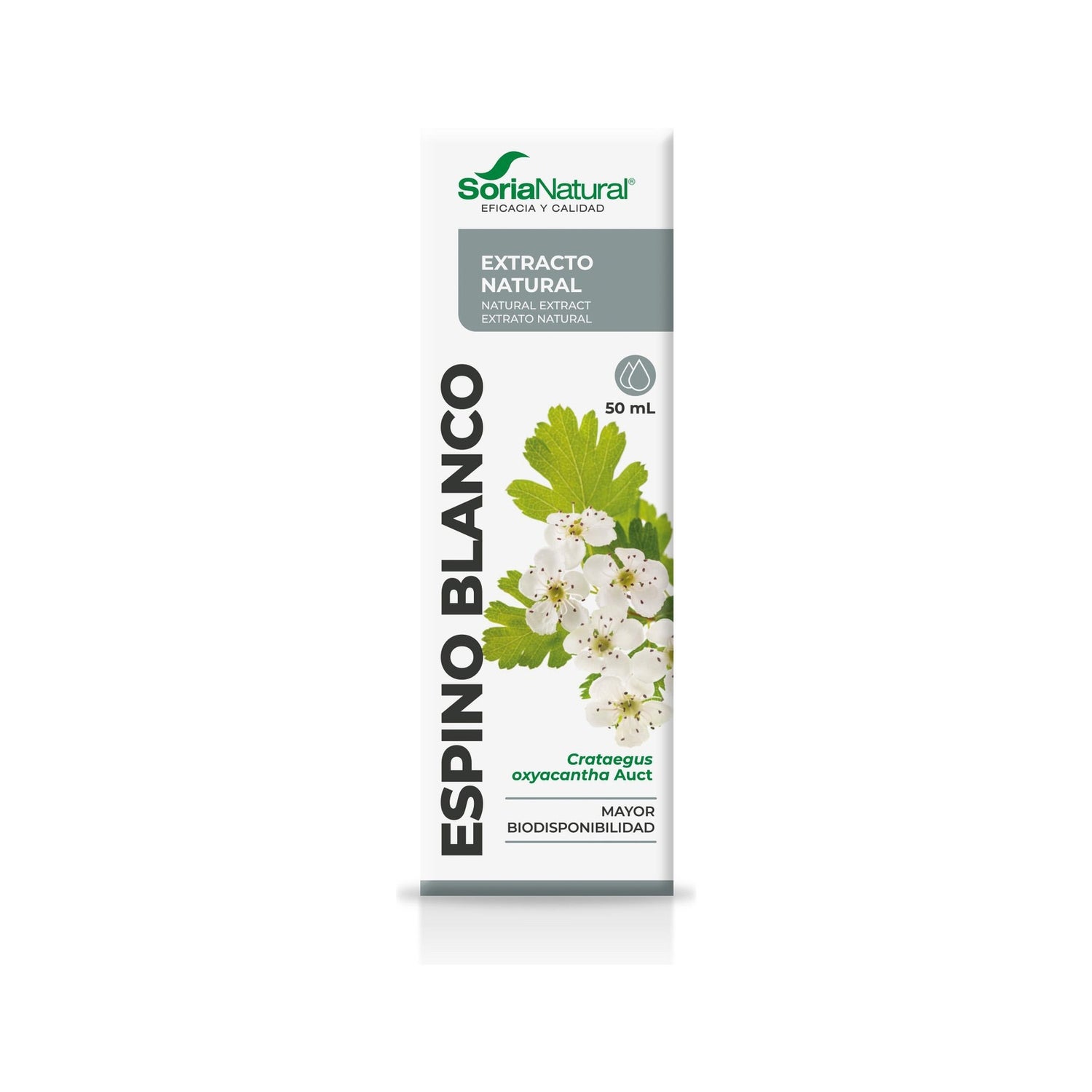 Soria Natural Espino Blanco Extract 50ml est un complément alimentaire d'extrait d'Espino Blanco XXI indiqué pour le traitement des affections du système cardiovasculaire.