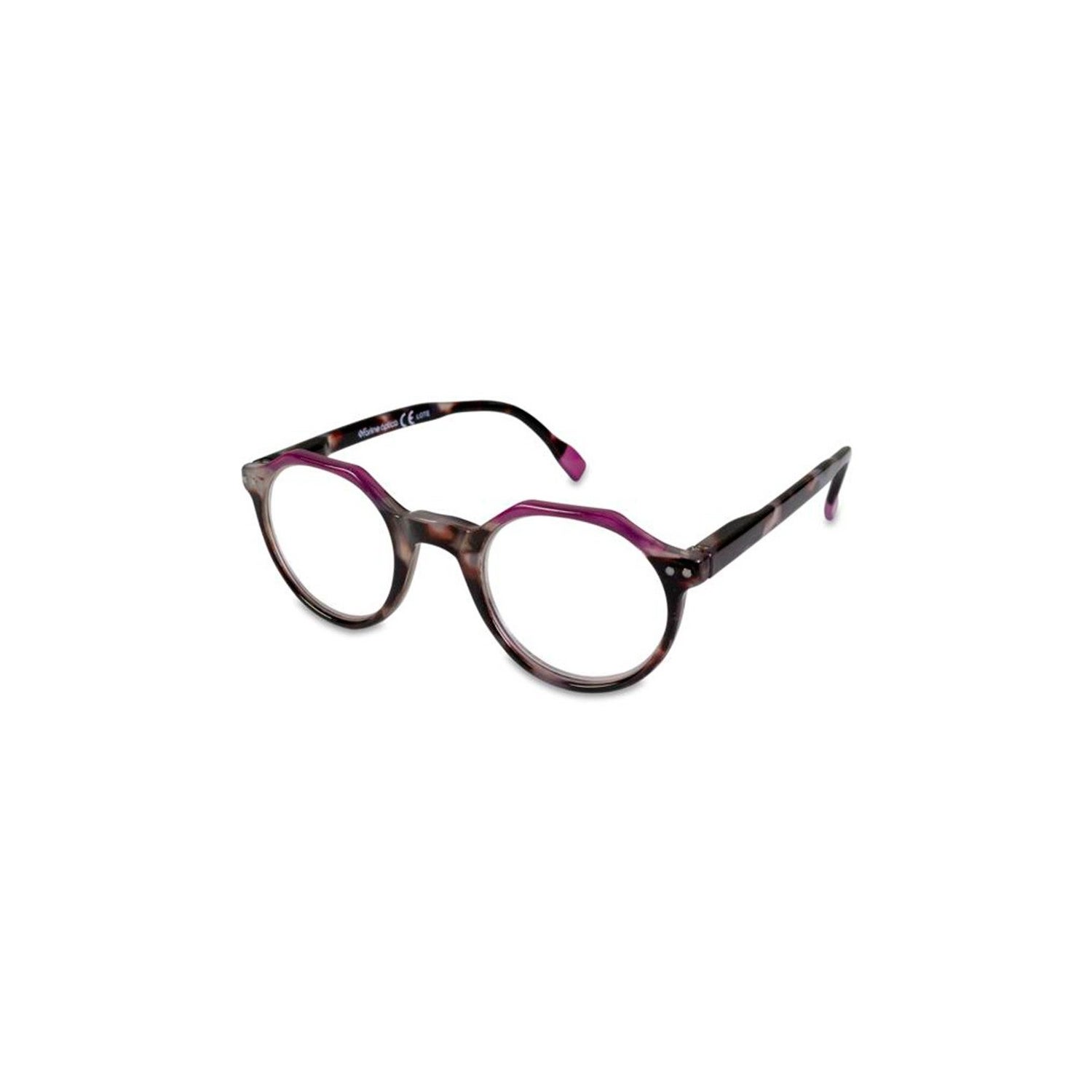 Lunettes pour presbytes avec dioptrie +3,00, monture ronde en acétate de couleur violette et verres asphériques. Elles aident à retarder l'apparition de la fatigue visuelle et à maintenir la concentration des yeux pendant la lecture. En outre, les verres sont dotés de filtres de protection contre les UV. Convient aux adultes.