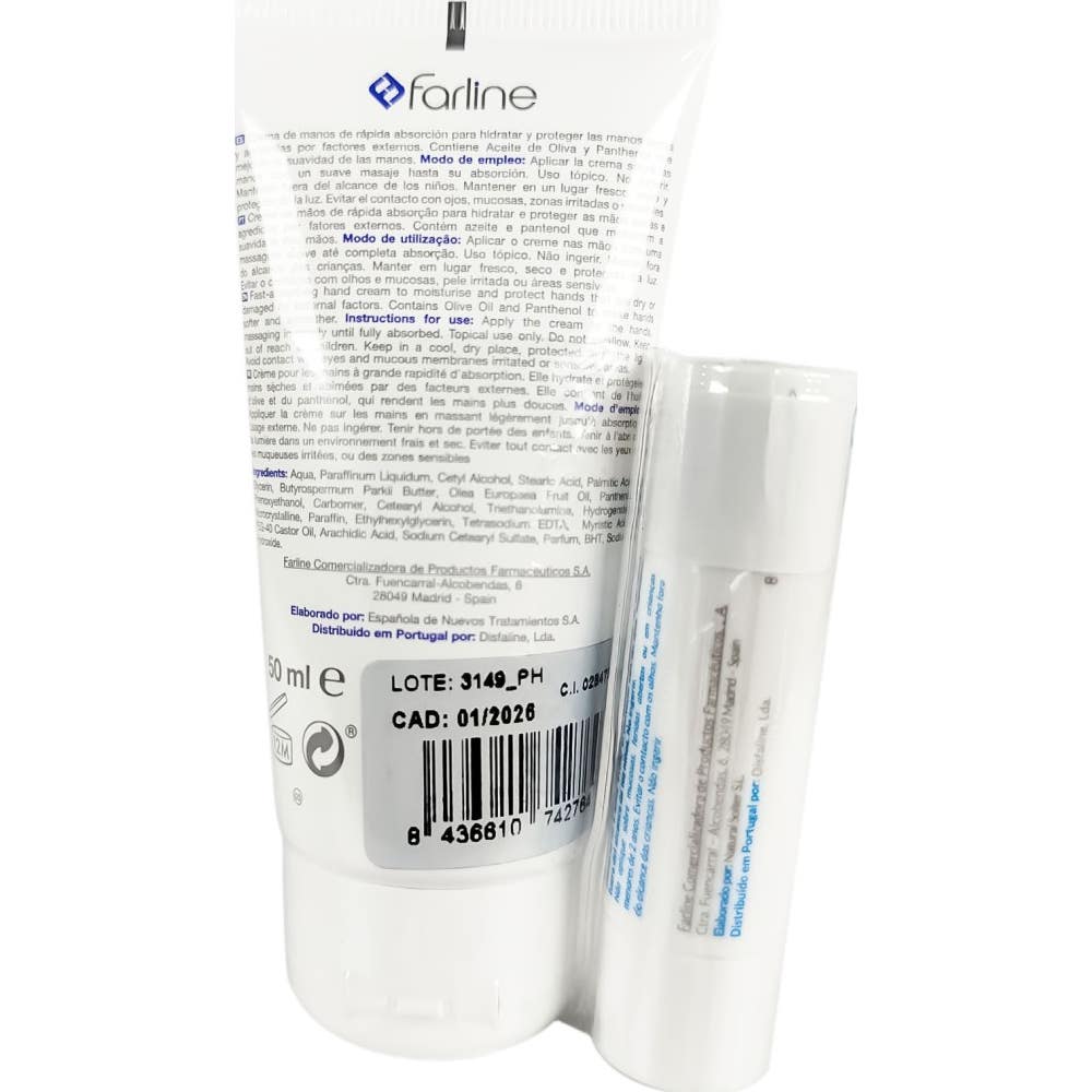 Farline Kit Crème Mains 50 ml + Baume à Lèvres SPF15 est un ensemble conçu pour le soin quotidien de la peau, offrant hydratation et protection tant pour les mains que pour les lèvres.