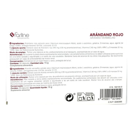 Farline Cranberry 30Caps est un complément alimentaire qui aide à traiter et à prévenir la cystite ou l'infection des voies urinaires.