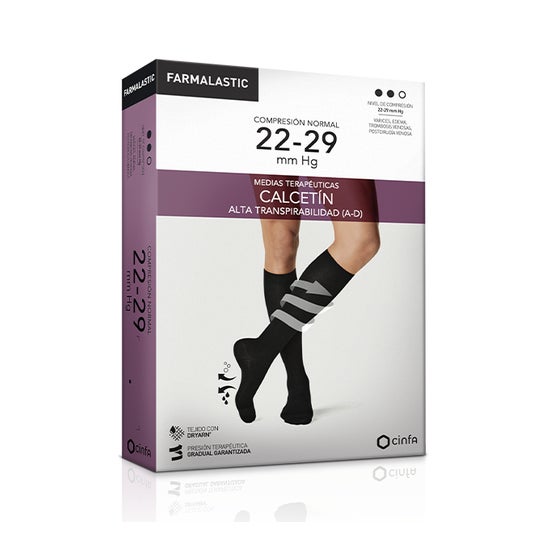 Farmalastica fabriqué la chaussette antibactérienne (A-D). Cette chaussette de compression antibactérienne normale de Farmalastic donne à la jambe un léger massage vers le haut en exerçant plus de pression sur la cheville et moins de pression sur la partie supérieure, facilitant ainsi la circulation veineuse, le pied étant tissé en fil d'argent pour prévenir les odeurs et les bactéries.